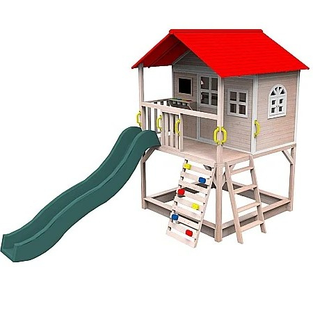 Sigură și confortabilă, casa de grădină din lemn, OMAH, este perfectă pentru copii care au prieteni și cărora le place să formeze echipe. La parter regăsim groapa de nisip care este atelierul de creație la care visează orice copil. La etaj căsuța cu acoperiș roșu și cu terasă își asteaptă copii să își facă planurile pentru orele de joacă care urmează. Casa are cinci ferestre, iar de pe terasa acoperită pornește toboganul care oferă celor mici clipe de neuitat. Ceva nou și atrăgător pentru micii prichindei este zidul de cățărare care are pietre colorate pentru susținerea picioarelor, această modalitate fiind mai iubită de către copii, decât clasicele scări. Căsuța OMAH este cea mai deosebită căsuță dintre toate.