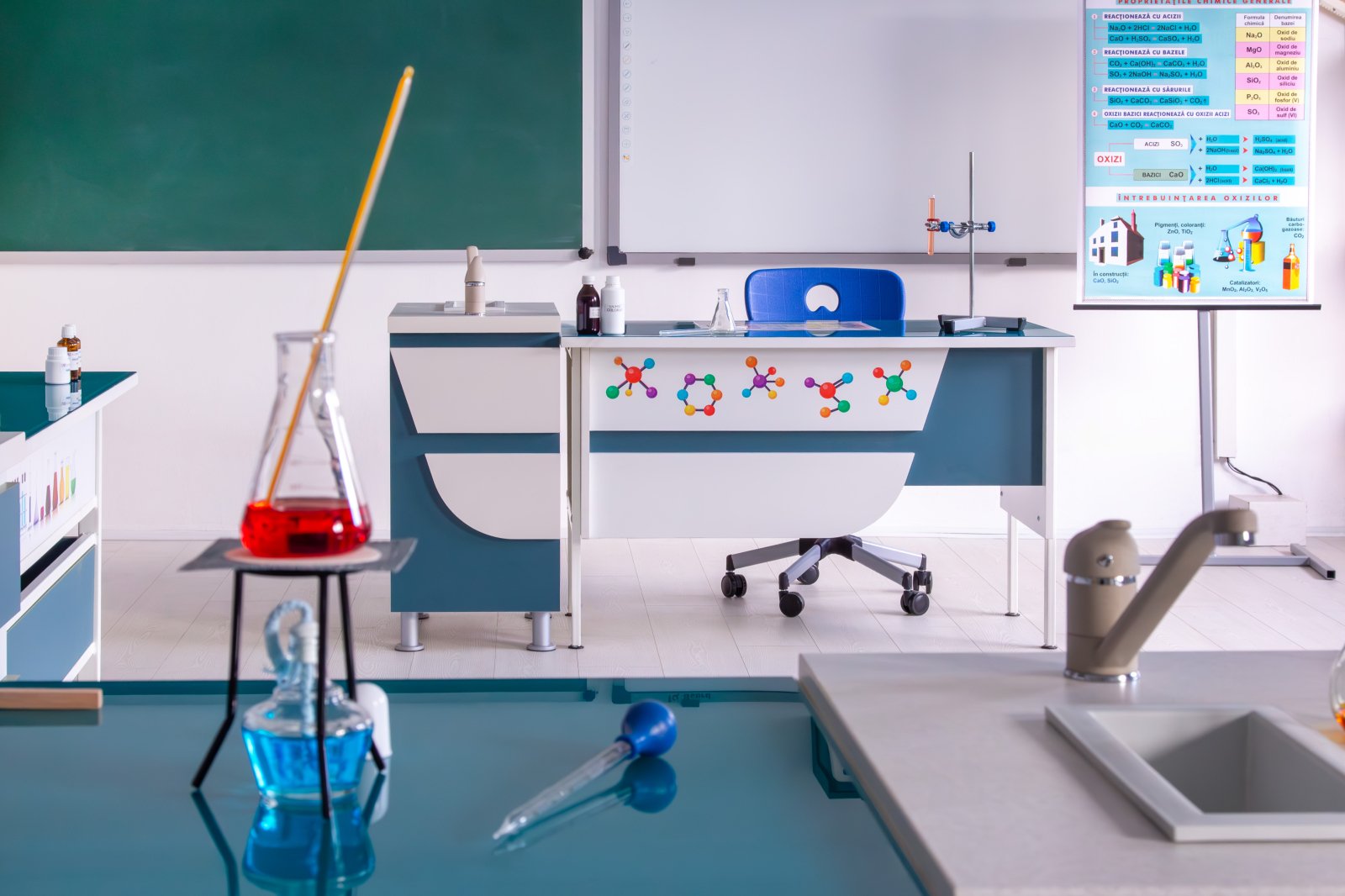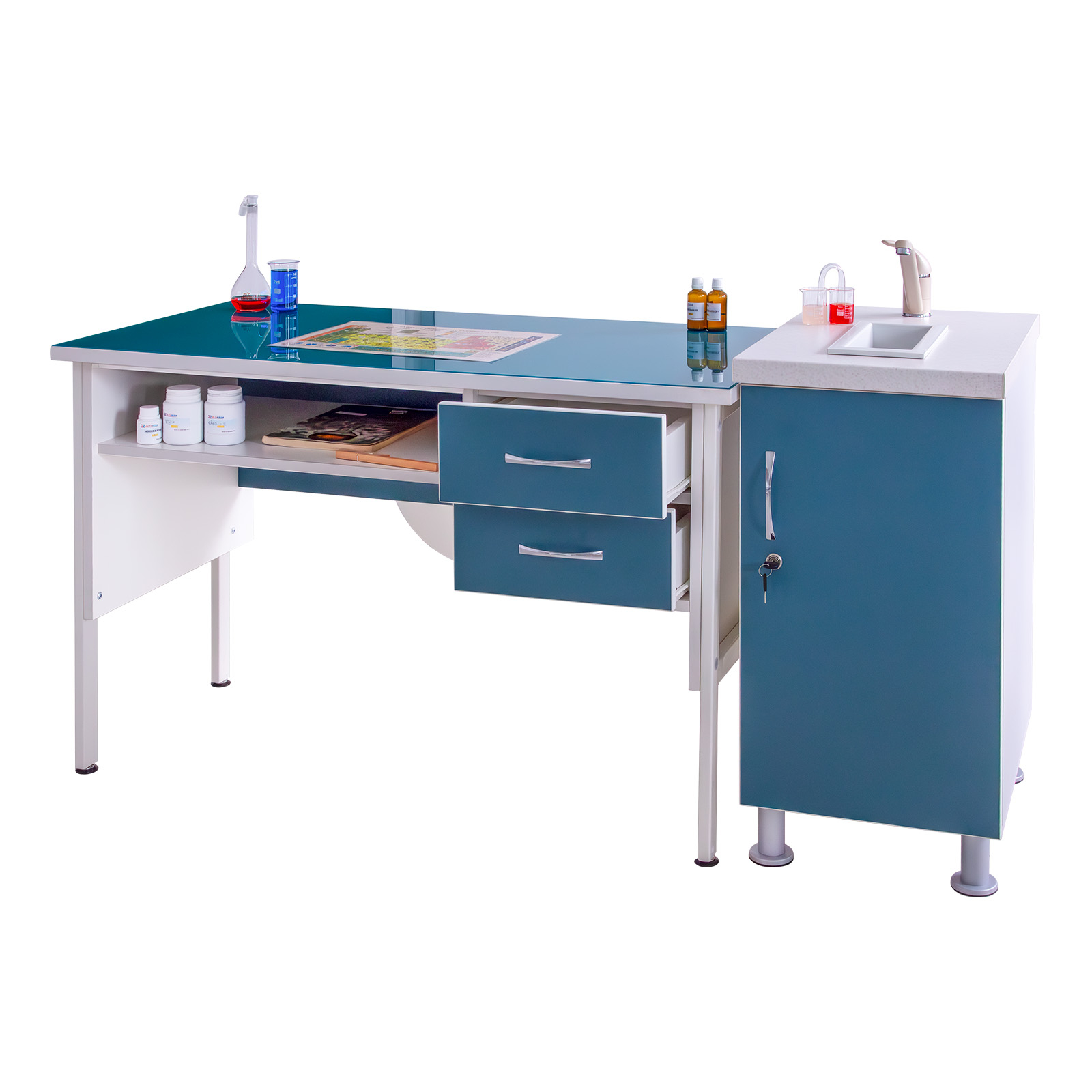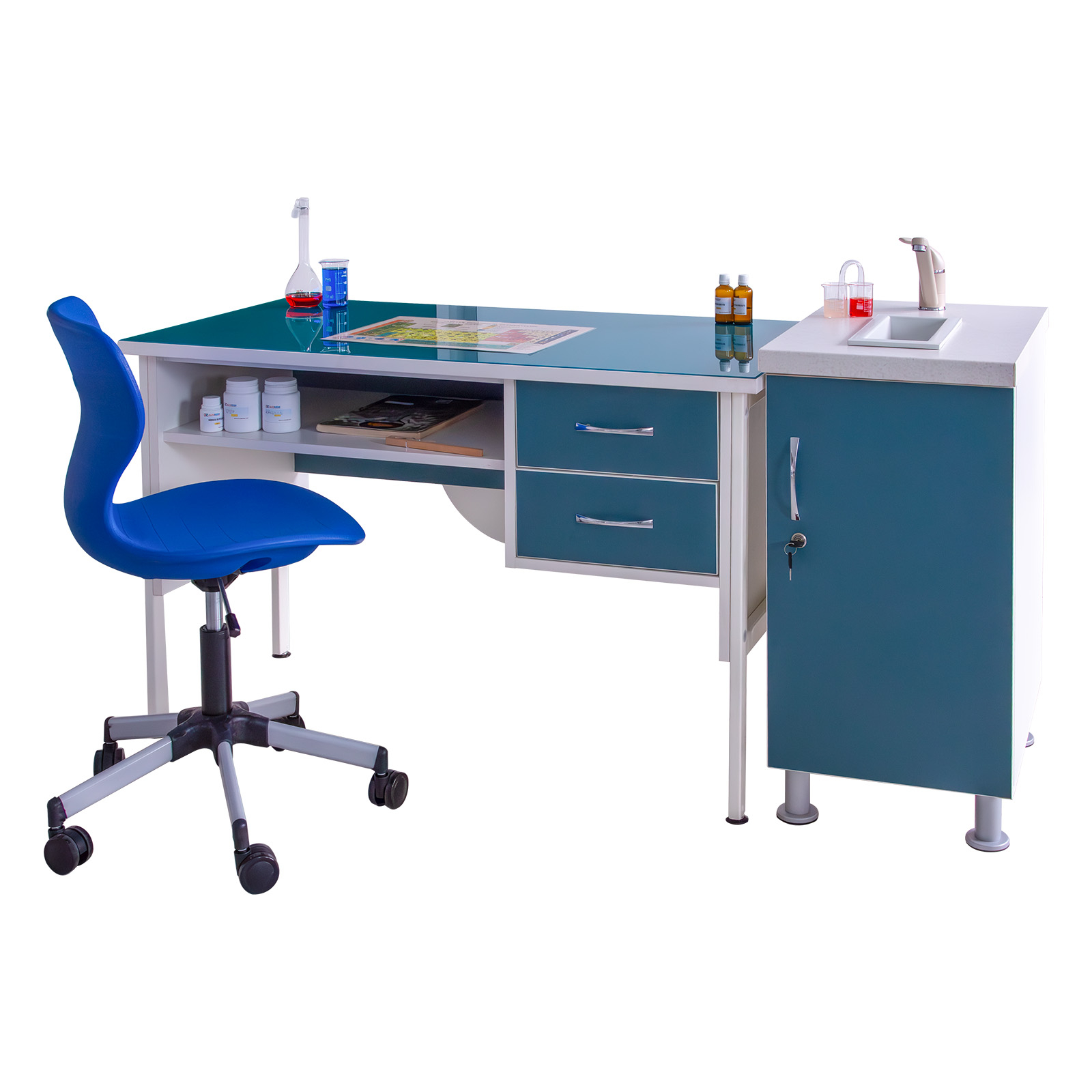 Un avantaj practic important îl reprezintă cele două sertare spațioase, prevăzute cu închidere centralizată, ideale pentru depozitarea reactivilor, instrumentelor și materialelor didactice, asigurând totodată siguranța și controlul accesului.