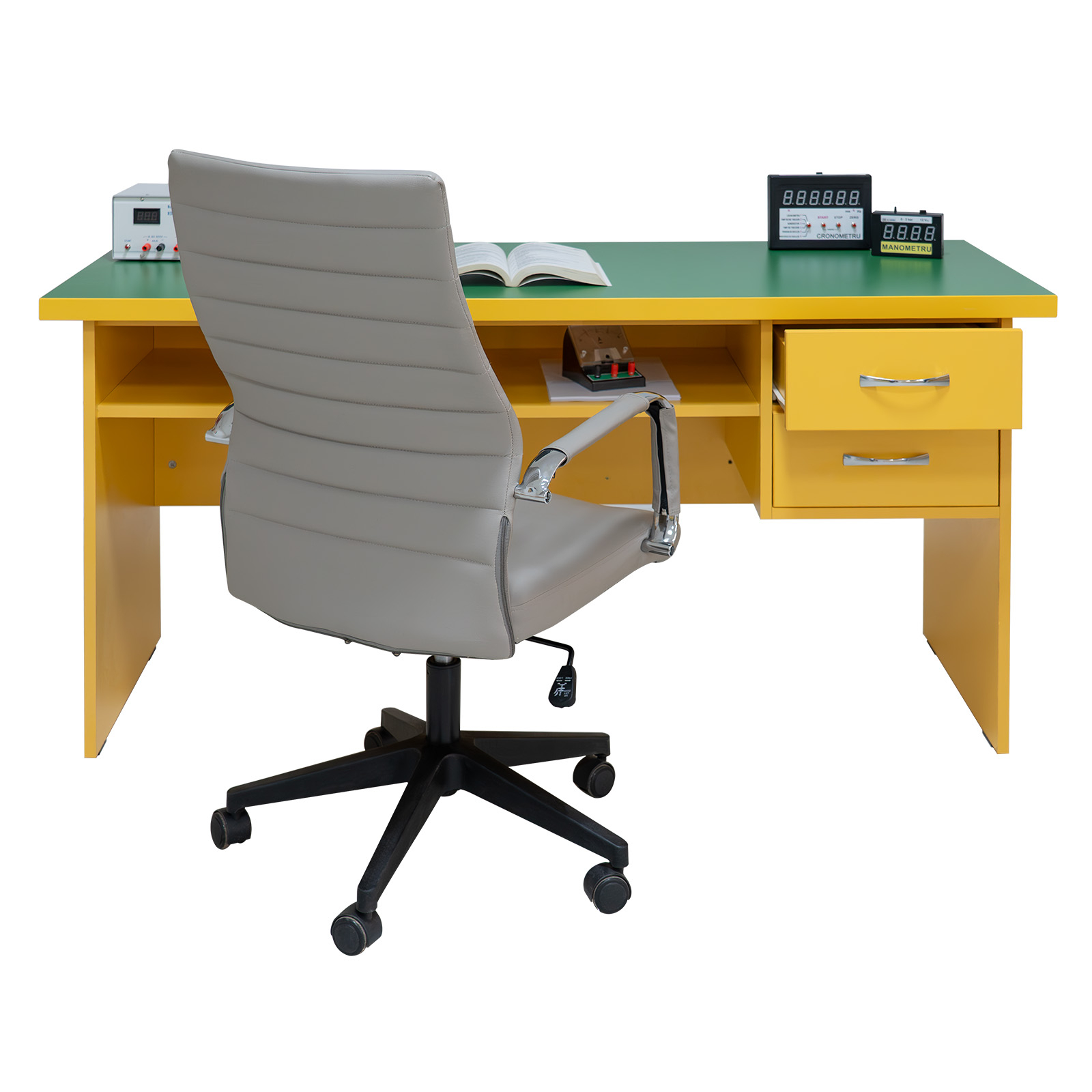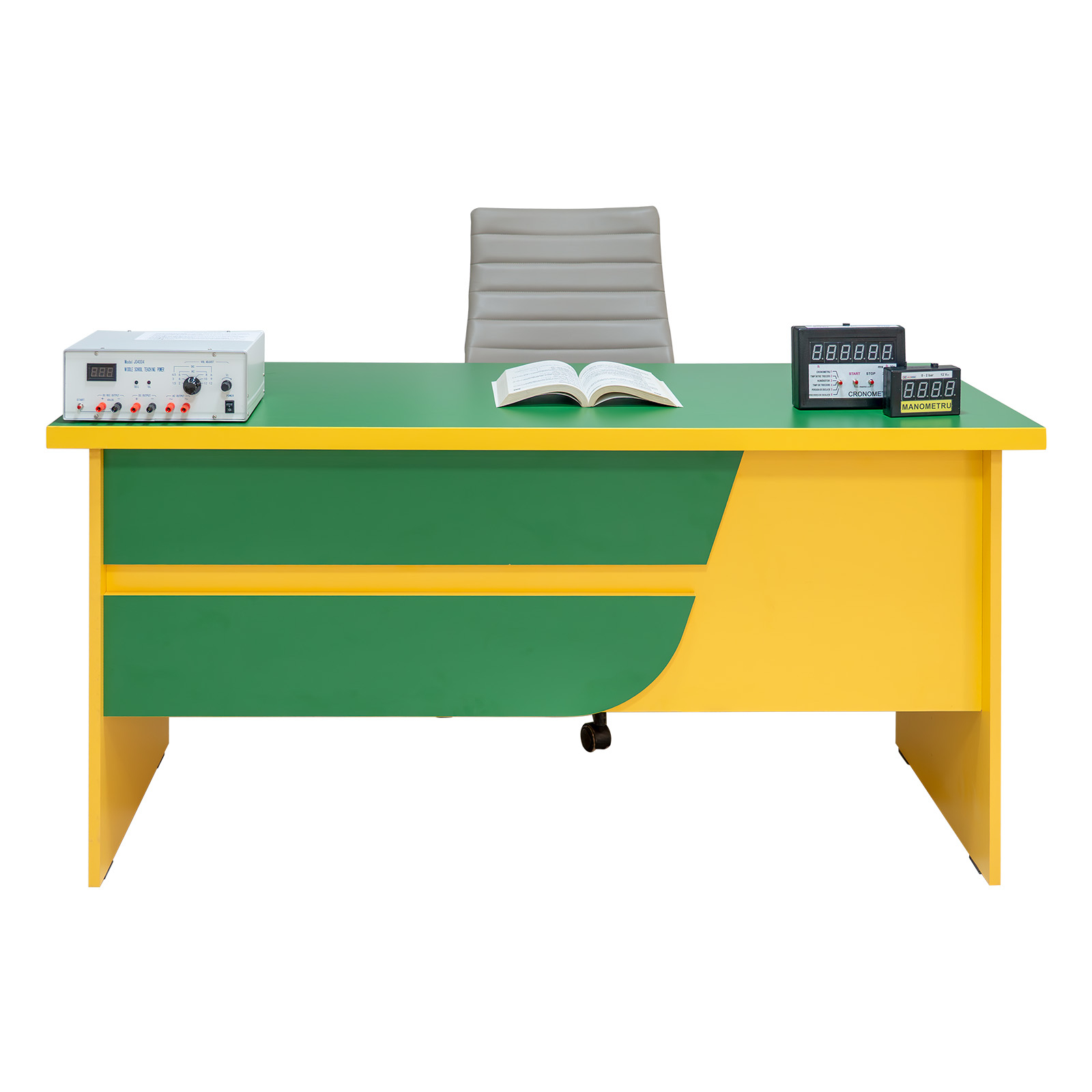 Structura catedrei este realizată integral din PAL melaminat de 18 mm, ceea ce oferă stabilitate și un aspect unitar. Compartimentarea include spații de depozitare și sertare, utile pentru documente, rechizite și materiale necesare la oră, astfel încât totul rămâne la îndemână și bine organizat.