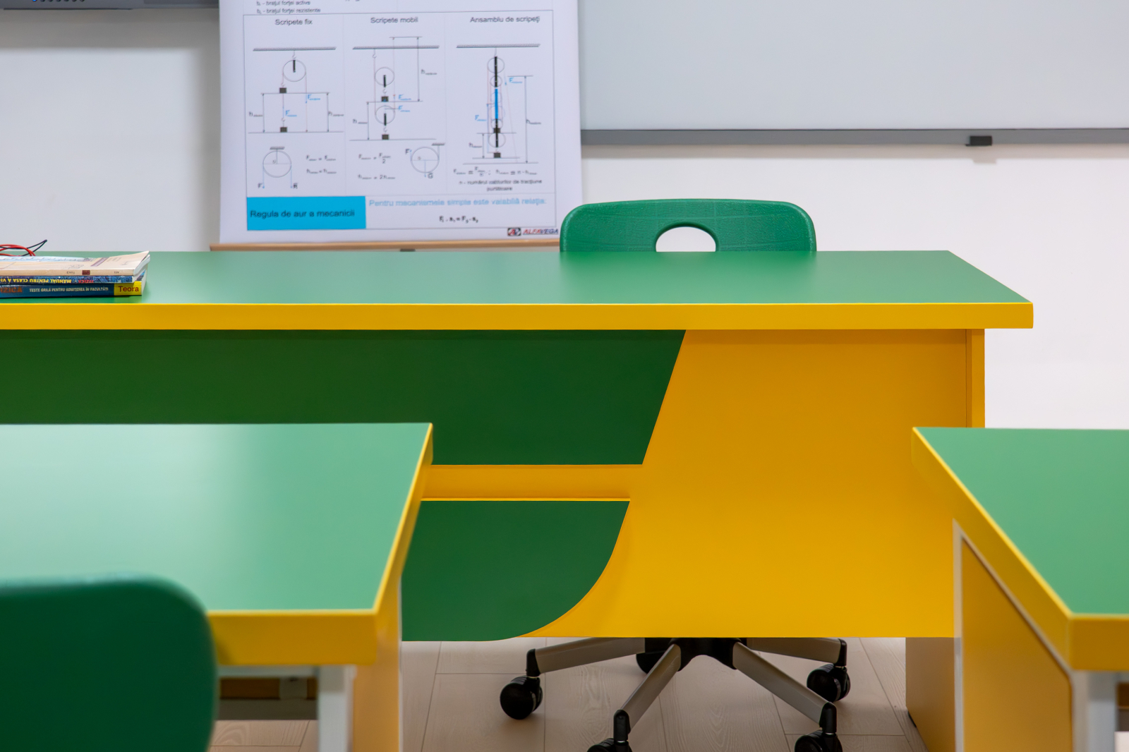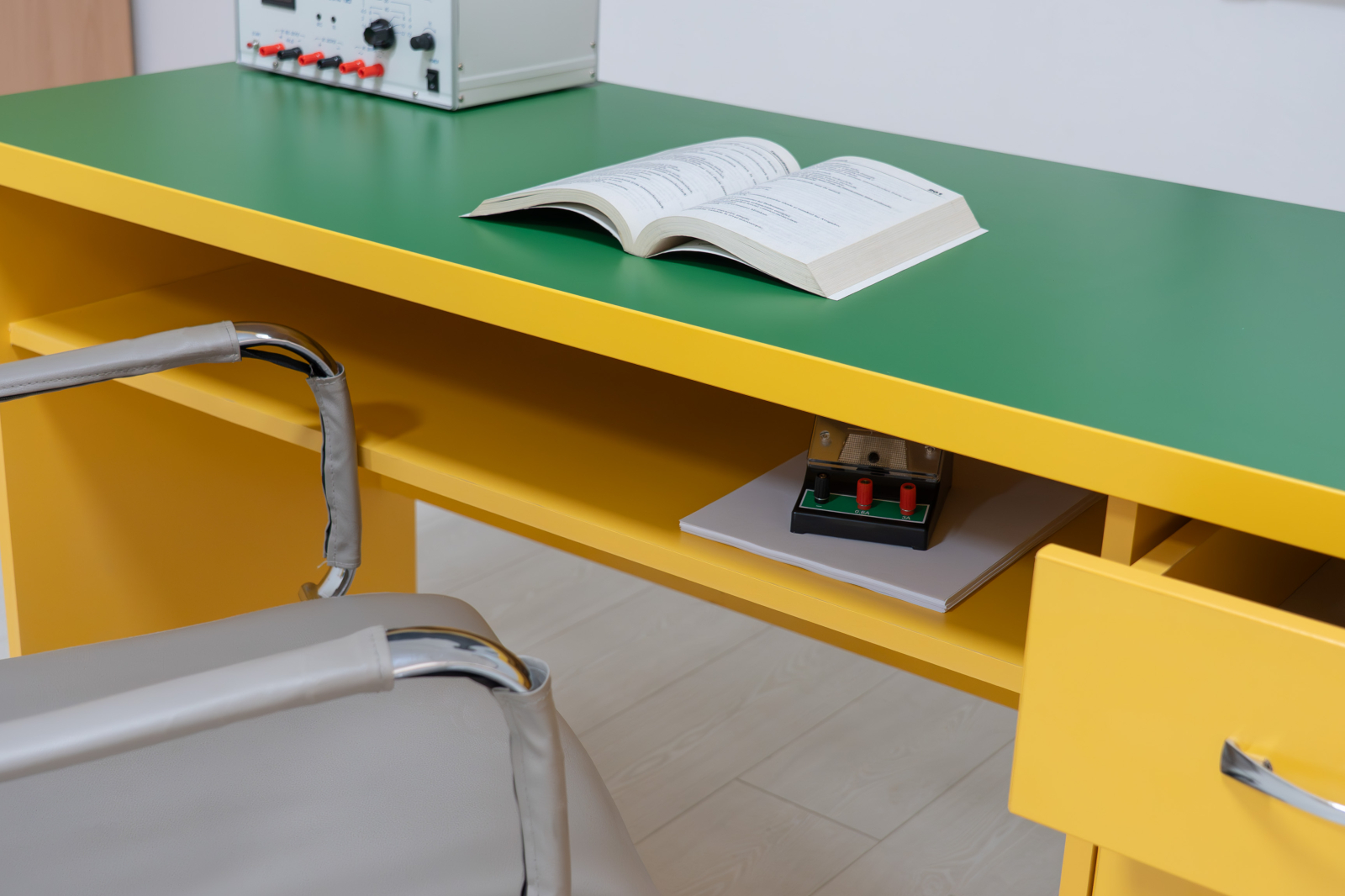 Prin designul modern și finisajul color, Catedra ACCES PLUS se integrează ușor în mobilierul școlar, fiind o alegere potrivită pentru sălile de clasă și laboratoare.