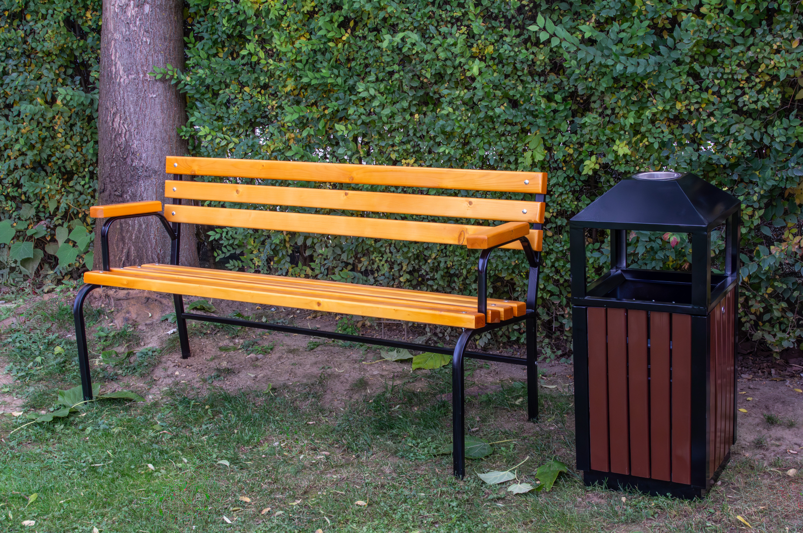 design modern și robust, fiind conceput pentru integrarea armonioasă în spații urbane, rezidențiale sau comerciale. Forma geometrică bine definită și combinația dintre metal și WPC oferă un aspect elegant și contemporan.